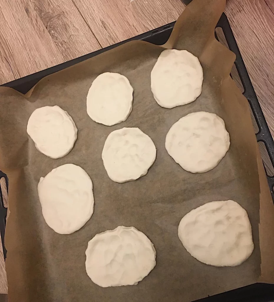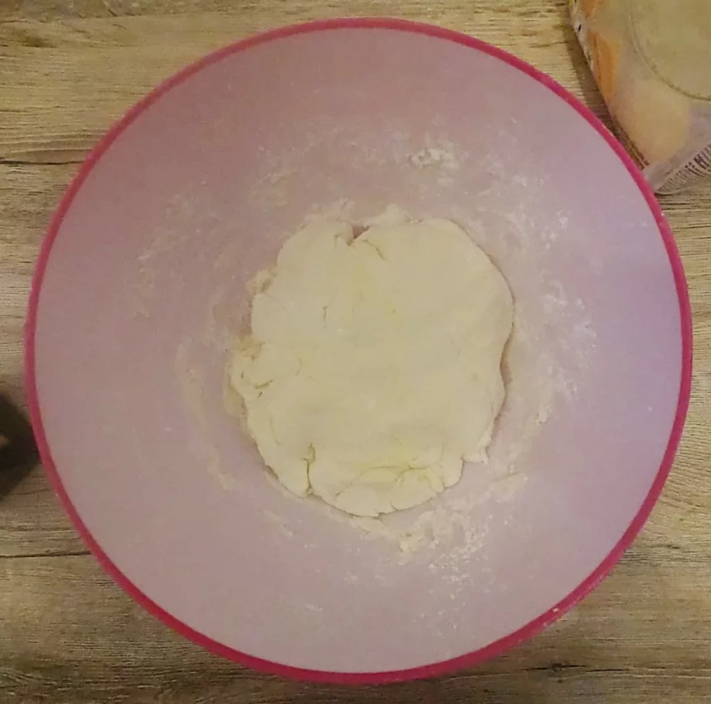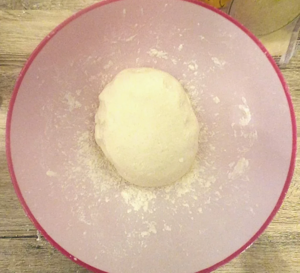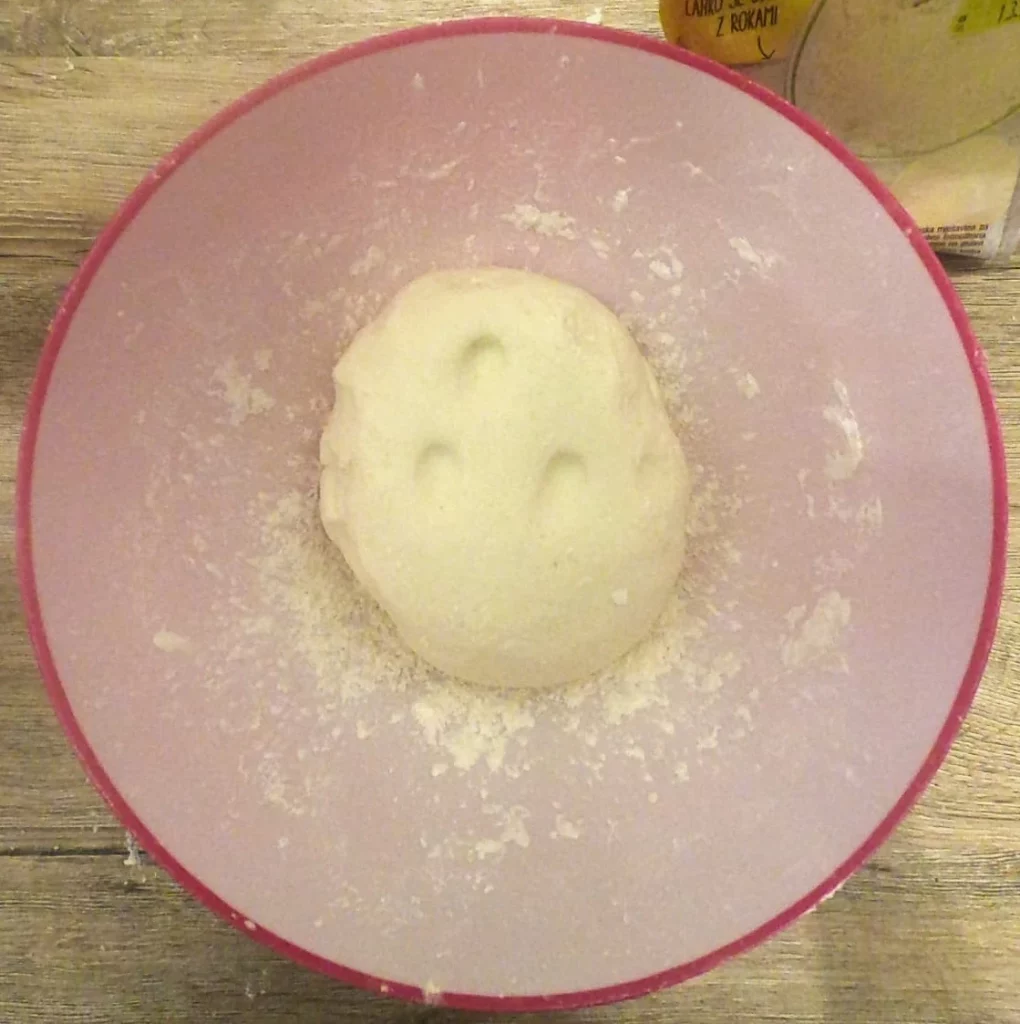 Take your original bowl and sprinkle a light layer of flour so that the dough doesn’t stick to the surface. Place it inside, cover it with a clean cloth and wait for the baking powder to do its magic.