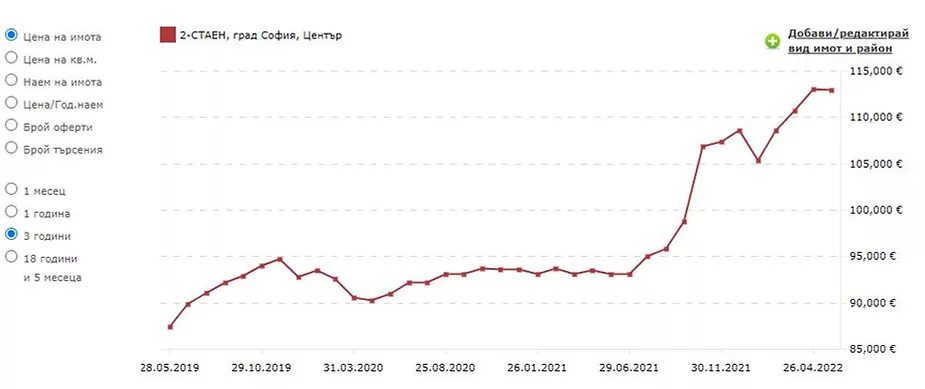 - Цената на имота щеше да се е покачила с около 40% по данни на портала Imoti.net или 20% според imot.bg . Взимаме средната стойност – 30% .